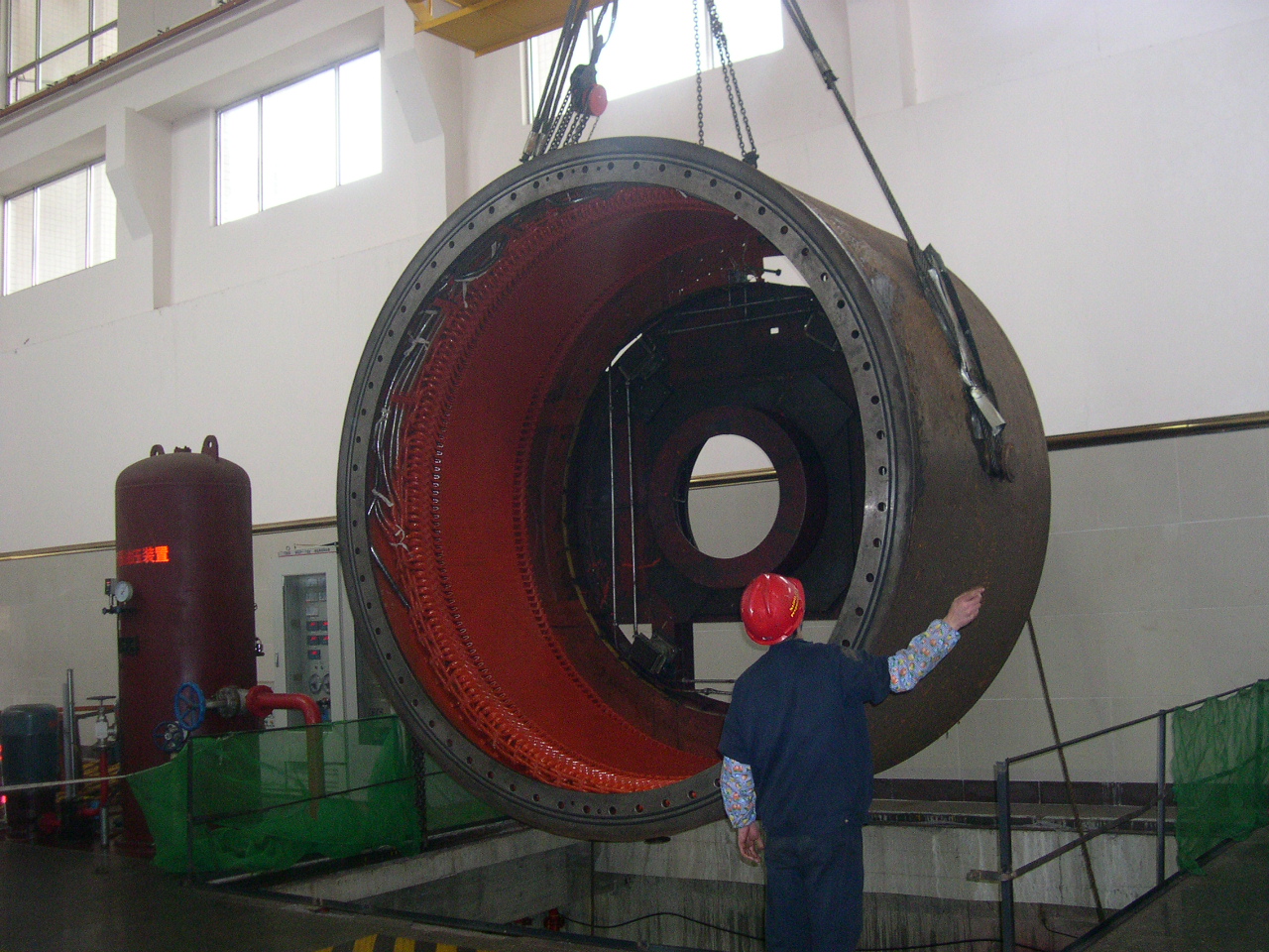 公司可設(shè)計開發(fā)生產(chǎn)制造水頭3~500米、轉(zhuǎn)輪直徑0.35~5米,單機(jī)容量125-10000kW的貫流式、軸流式、混流式、斜擊式、沖擊式水輪發(fā)電機(jī)組及,其配套的球閥、蝴蝶閥、液壓閘閥、閘門、起閉機(jī)、可控硅勵磁裝置、電站繼電保護(hù)、電站電力控制設(shè)備等配套設(shè)備,以及中、小型發(fā)電設(shè)備技改、維修,及零部件生產(chǎn)加工。 公司擁有生產(chǎn)所需的全套設(shè)備和完善的檢測手段,擁有各類專用設(shè)備100多臺,其中大型專用加工設(shè)備10多臺,如5m數(shù)控立車、6m臥車、Ф160數(shù)控鏜床、三座標(biāo)數(shù)控龍門銑床、數(shù)控線圈漲型機(jī),數(shù)控切割機(jī),70mm卷板機(jī),500T油壓機(jī)等;公司另設(shè)有發(fā)電機(jī)試驗臺、絕緣材料試驗室等檢測、試驗部門。